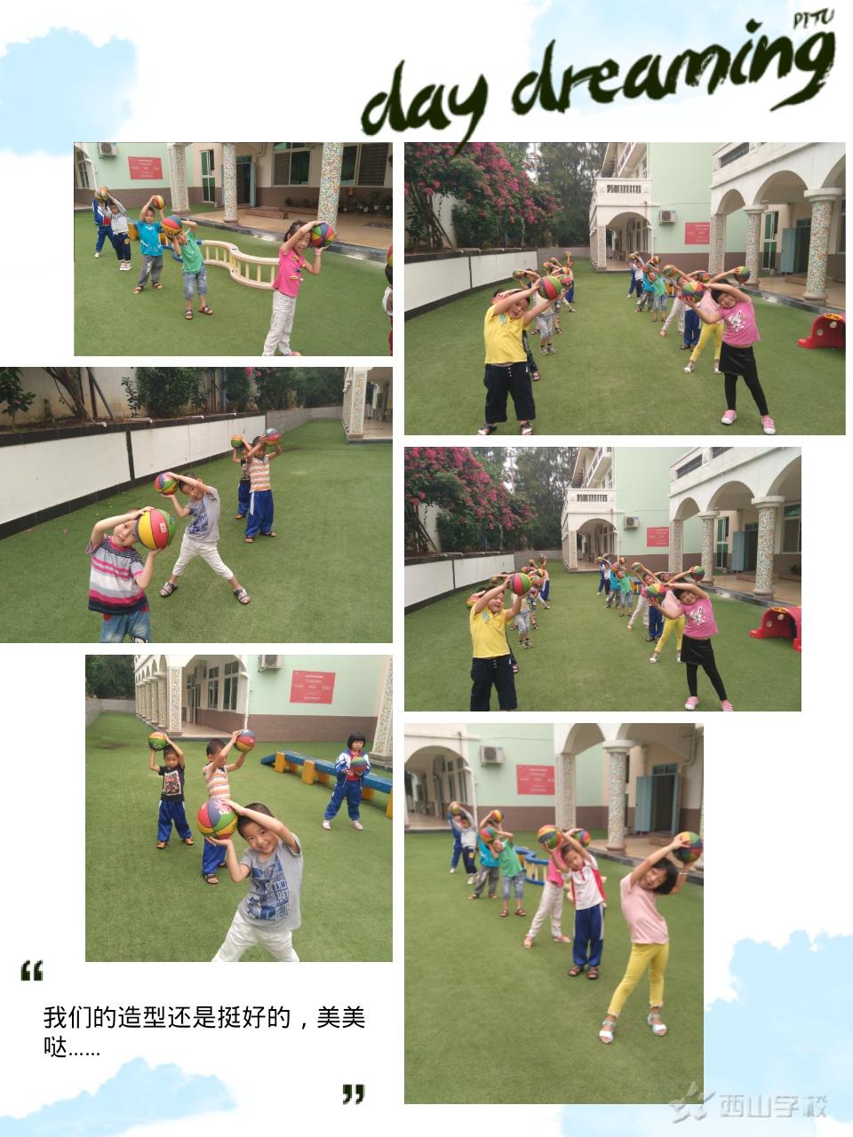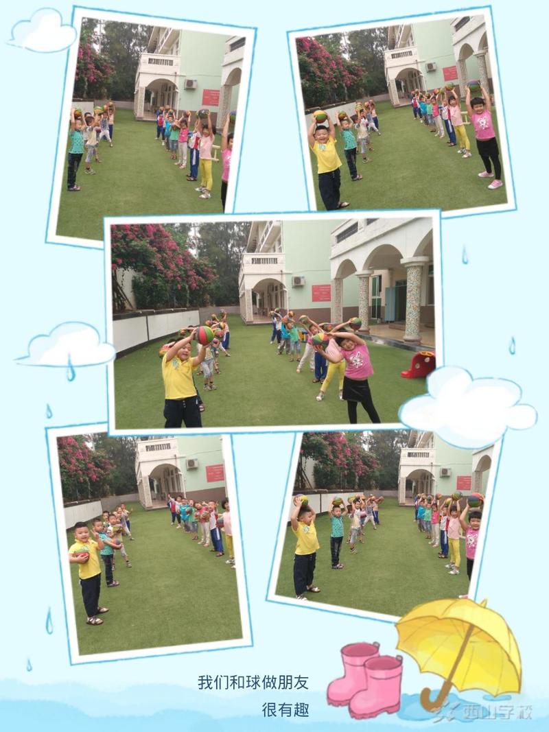 ③自接自抛球:双手把球抛过头再接住球位高球,把球抛在头以下为低球。可听教师口令抛接高球或低球。