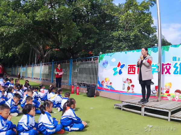 最后,西山学校幼儿园常务副园长江建琼对此次演练做出了总结,希望小朋友们能熟悉消防安全知识,掌握安全逃生技能,珍爱生命,远离火灾。