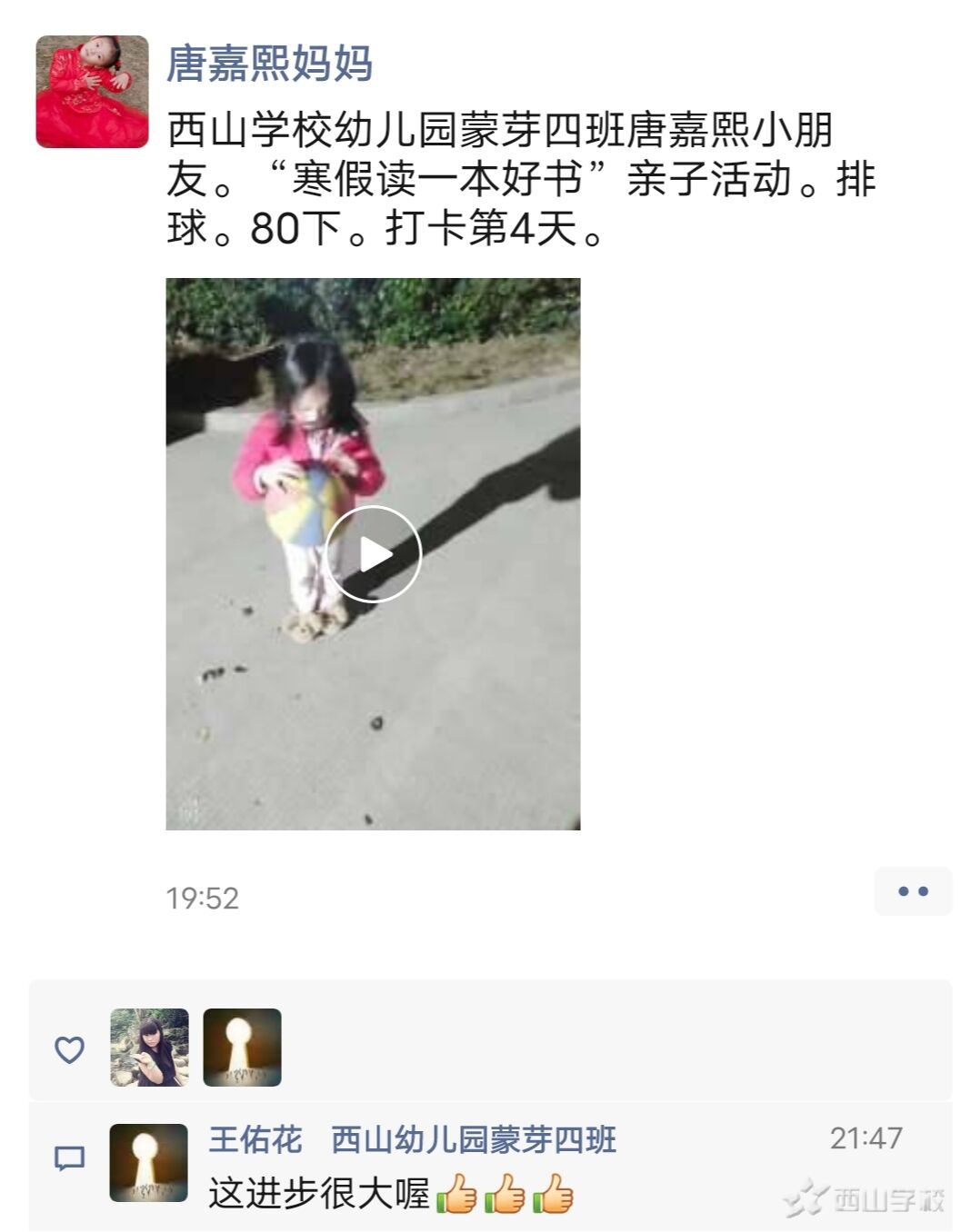 假期虽冷,但是运动一定不能少,在寒假的冬日运动,不仅能锻炼宝贝们的身体,在运动中孩子们也将会掌握各项运动小技能,如“拍球、跳绳、转呼啦圈”等。让孩子们亲自感受自己成长的每一刻,这个寒假,让每一个孩子坚持做一件了不起的小事。让每个孩子都能超越自己,做自己的冠军。