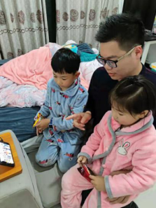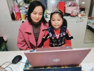 家长和孩子认真观看直播