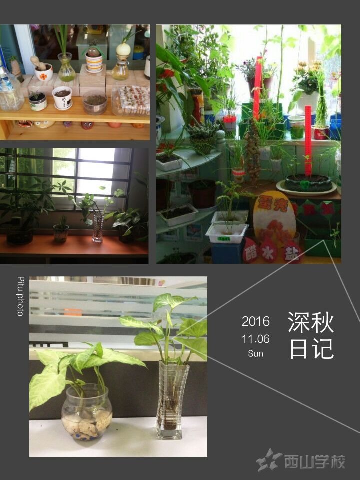 植物都拥有着鲜活的生命力,它们生长发育的过程,具有一定的教育意义,孩子们在浇水、种植、换水等活动中,观察植物、照成植物,不仅激发了好奇心和求知欲,也培养了幼儿动手动脑、探究问题的能力,萌发了幼儿爱护植物、亲近大自然的情感。西山幼儿园的小朋友们精心呵护,用心栽培,她们的植物角里充满了生机。