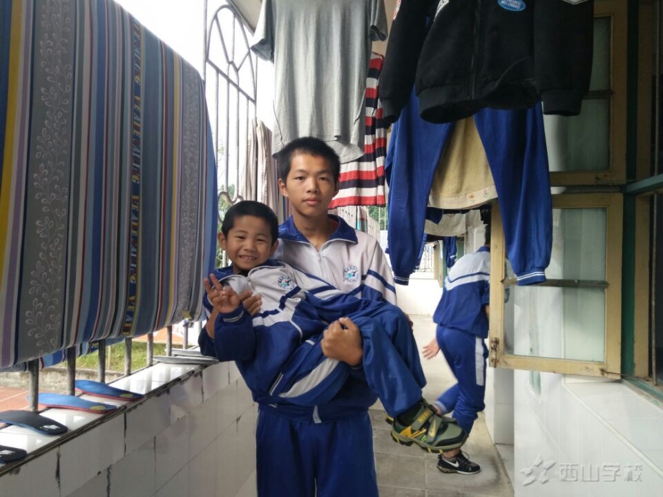 到了哥哥们的宿舍,哥哥们各自使出哄人招数,有的拿出零食执行,有的取出自己珍藏的奖牌,有的嘘寒问暖地聊天,很快打消了弟弟、妹妹们内心的紧张。小朋友们也秀起了自己的看家本领,耍酷的,卖萌的……,宿舍内时不时地传来大朋友、小朋友们的欢声笑语。寝室里、走廊外,到处是大手牵小手,捧在手心里的爱不有用言语,用心体会。