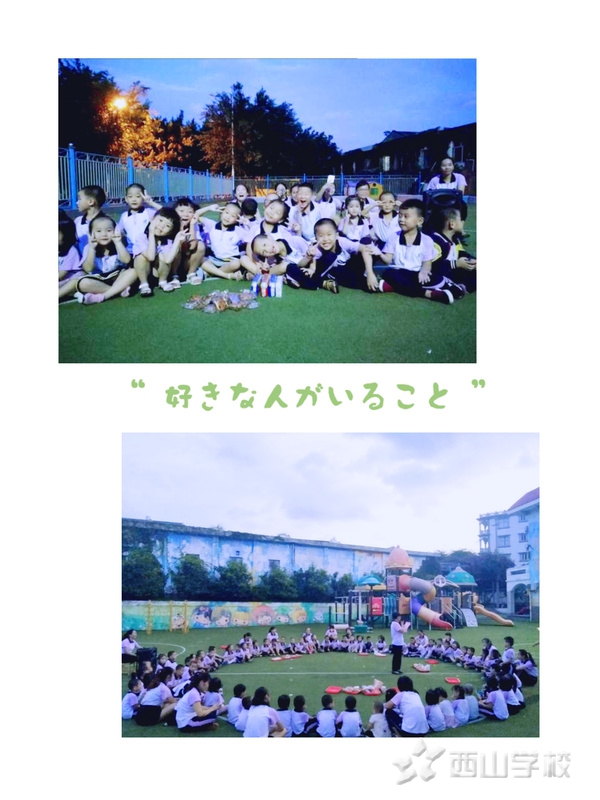 晚上,伴随着欢快的音乐,全体师生团圆在幼儿园的大操场,共同欣赏一轮明月,共同品尝月饼、柚子,分享秋之美色、秋之温情、秋之收获。