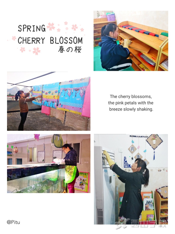 俗话说:“人勤春来早”,为了孩子们返园能有一个温馨舒适、干净整洁的学习生活环境,2019年2月18日上午福清西山学校幼儿园保健护士张瑜组织保教人员进行幼儿园安全检查及卫生大扫除活动。我们把对幼儿满腔的热爱,落实于行动上,倾注于抹布、拖把上,除污去垢,给幼儿创造一个健康、阳光、舒适、温馨的学习环境。
