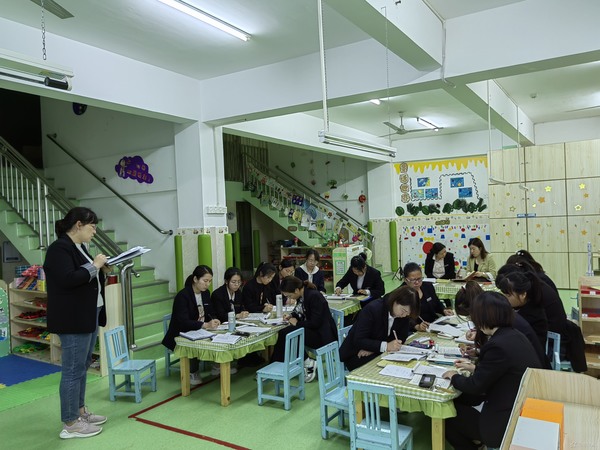 皮亚杰提出“儿童的智慧源于材料”。在区域活动中,材料就是幼儿们进行游戏活动的主要对象,因此,准备与幼儿的年龄特点、生活体验、认知能力等相符的可操作性材料,能有效激起幼儿的求知欲和探索欲望,使得他们能够在一种轻松愉悦的氛围中去观察事物,并从中去发现问题,对此进行主动的思考,在与材料的充分互动中积累解决问题的经验,最终提升我们开展区角活动投放的目的。最终,教研组长刘丽英老师于2022年4月7日对全体教师开展了以《区角活动材料的投放与指导策略》为主题的教研活动。